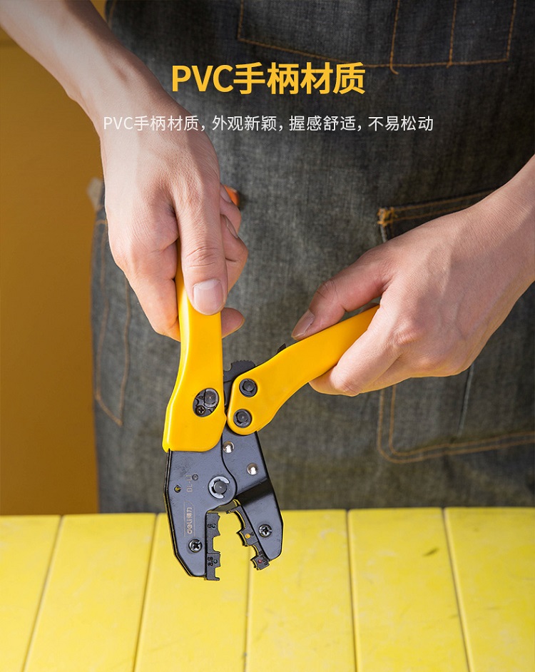 壓線鉗PVC手柄材質(zhì),外觀新穎,握感舒適,不易松動