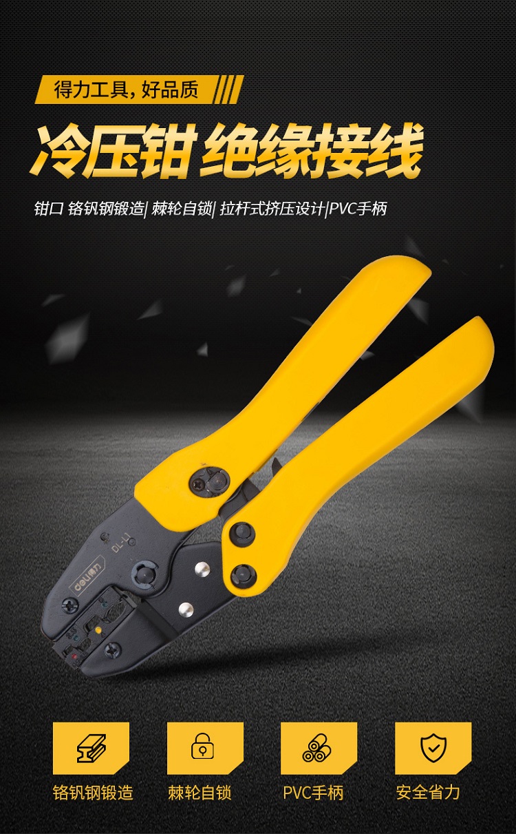 得力壓線鉗冷壓端子多功能棘輪壓接鉗歐式手動快速接線鉗夾線工具