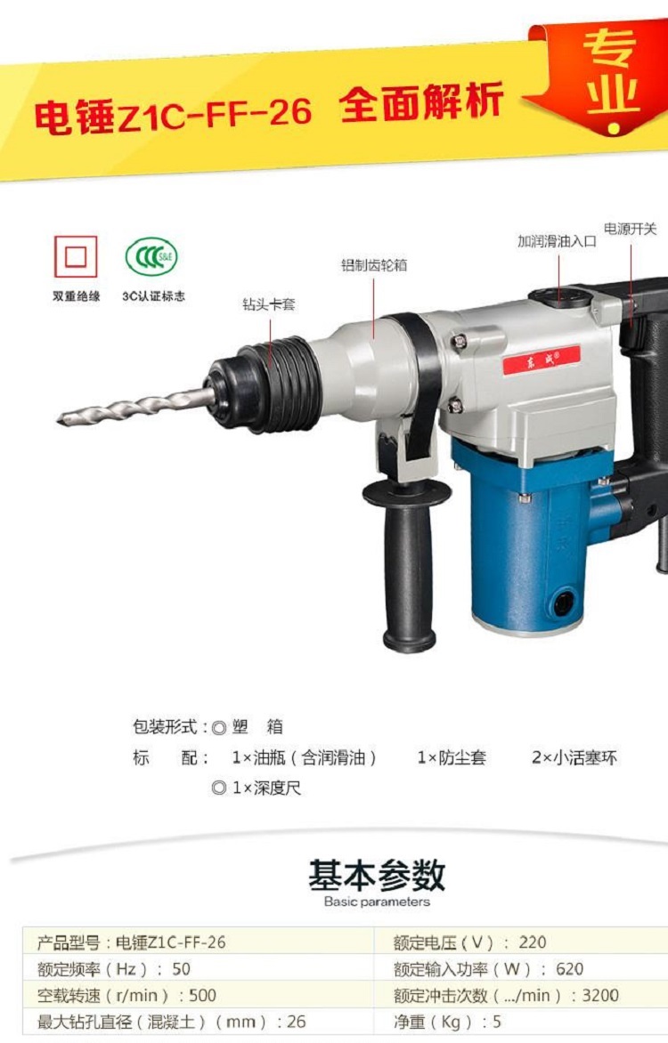 東成Z1C-FF-26電錘沖擊鉆電鉆兩用多功能輕型電錘 基本參數