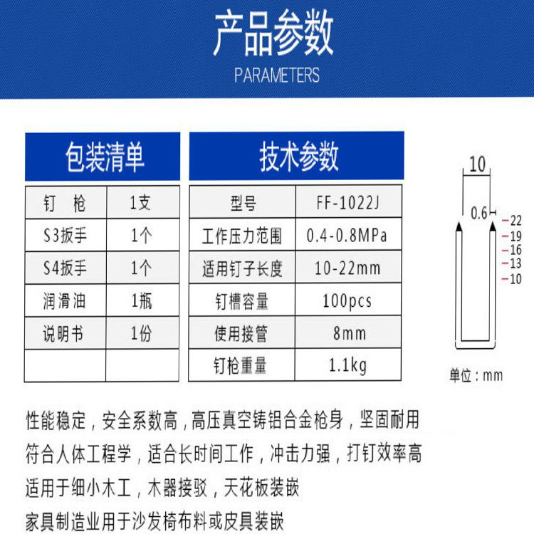 東成氣動碼釘槍FF-1022J堅固耐用高強(qiáng)度機(jī)身