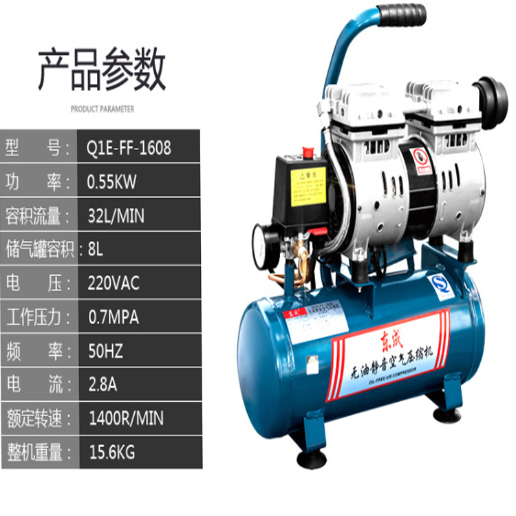 東成無油靜音空壓機Q1E-FF-1608高壓空氣壓縮機噴漆木工無油靜音
