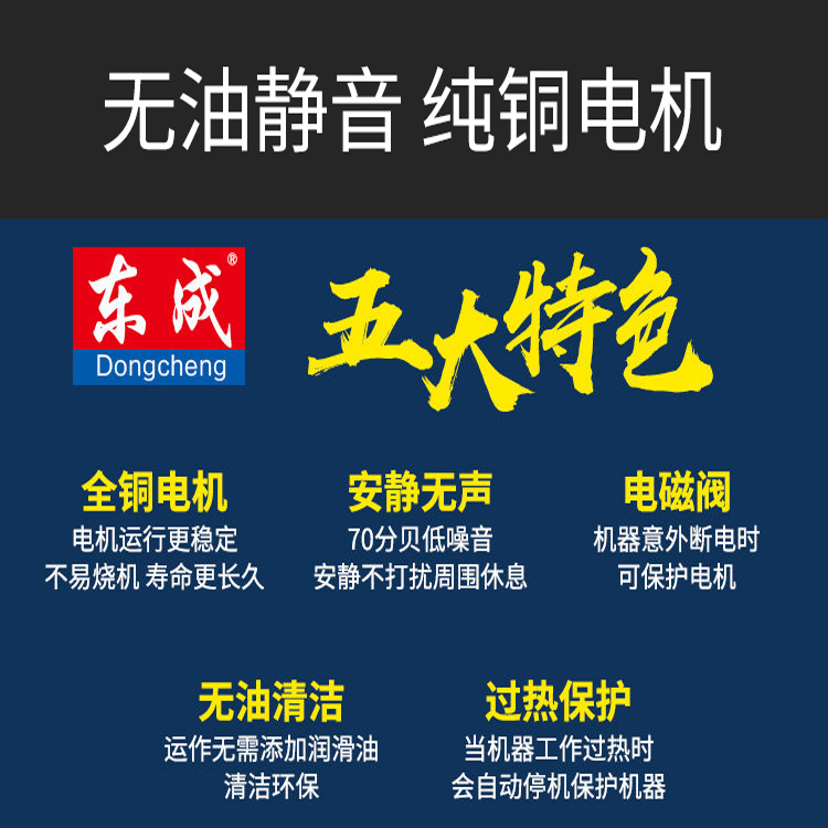 東成無油靜音空壓機Q1E-FF02-1824全銅電機,運行穩定不易燒機,壽命長久