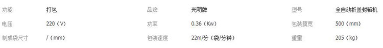 光明牌全自動折蓋封箱FJ-6050全自動折蓋封箱機/包裝機/封箱機 產品參數圖