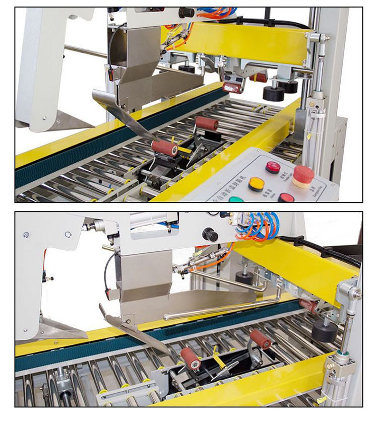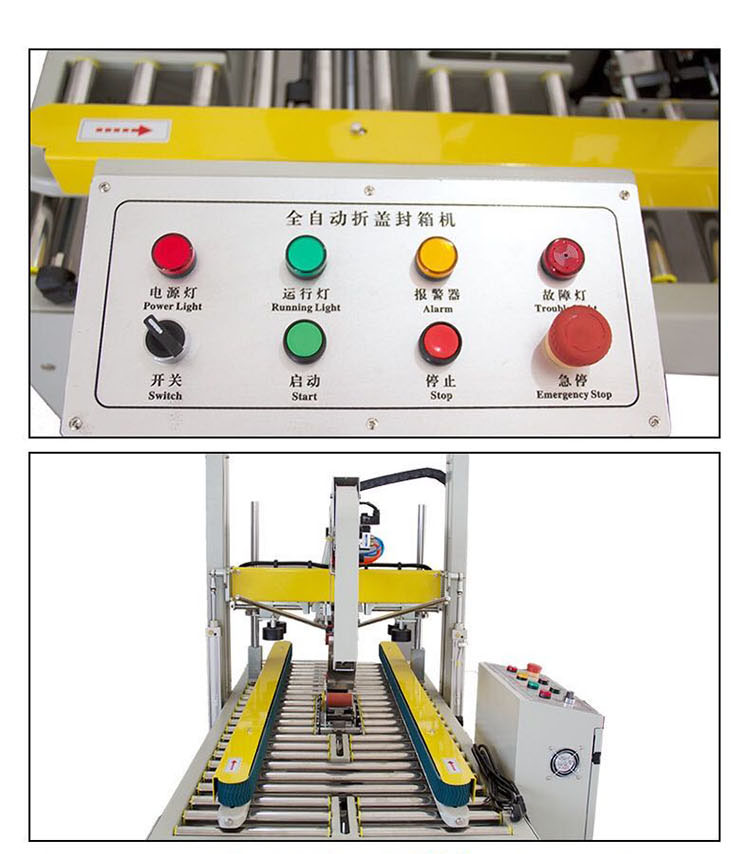 封箱機介紹:自動折蓋封箱機,自動折上蓋,上下自動貼上膠帶,無需人手作業;采用即貼膠帶紙箱封口,封箱效果平整、規范、美觀,封口更牢固,配套自動化包裝流水線使用將更能體現此機價值,是自動化包裝企業的首選。