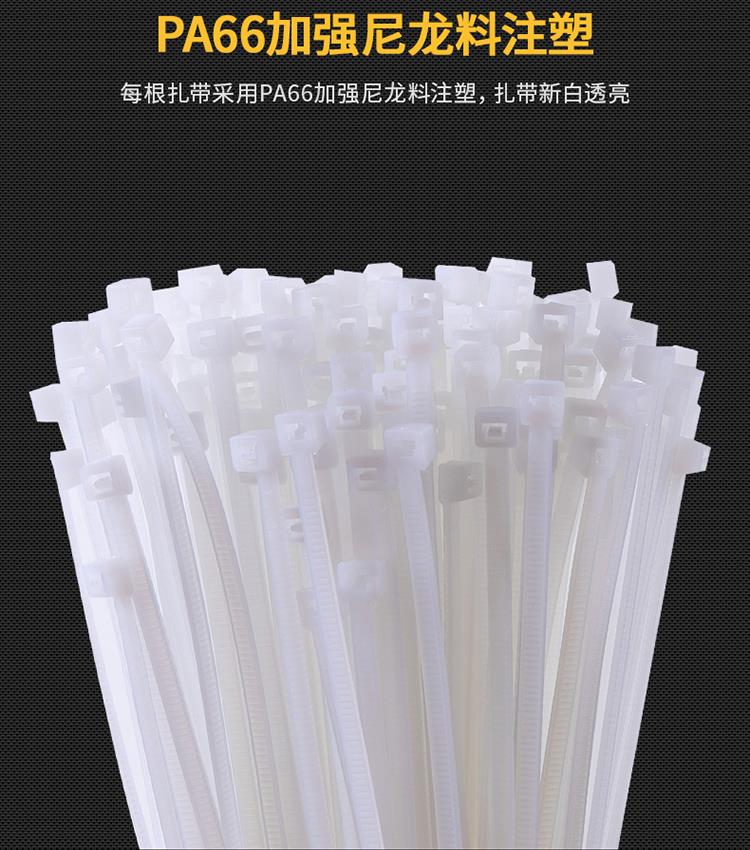 扎帶采用PA66尼龍料注塑,扎帶新白透亮
