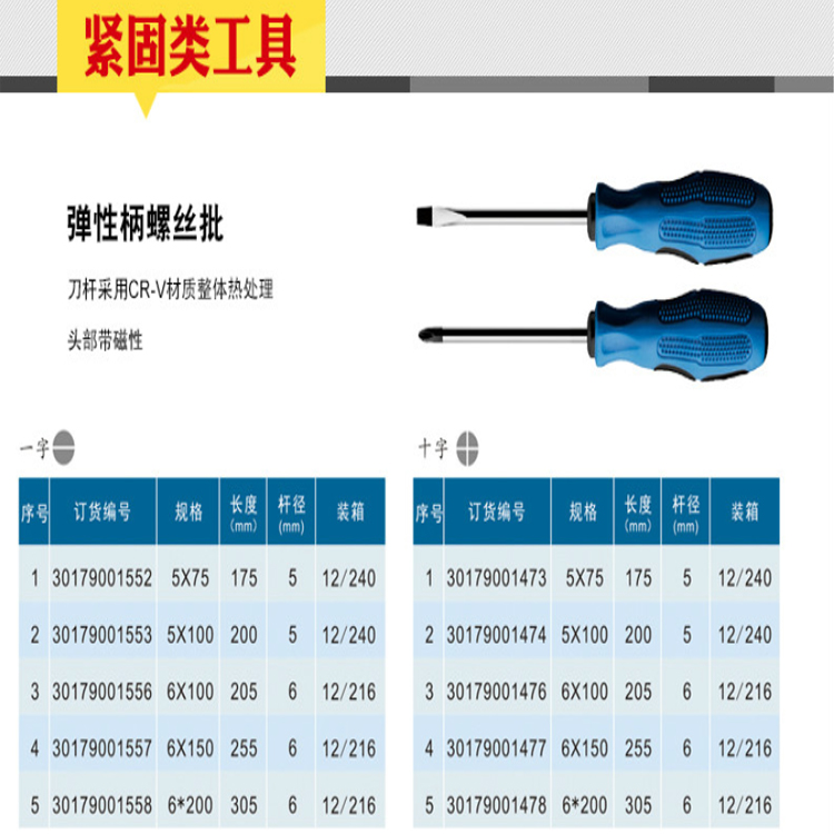 東成彈性柄螺絲批刀桿采用CR-V材質整體熱處理