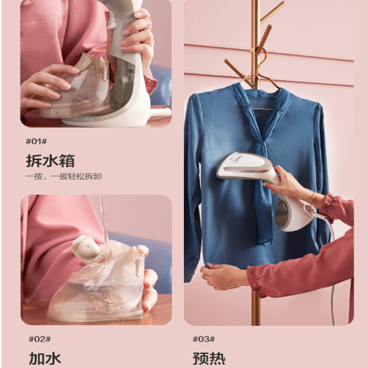 美的(Midea)掛燙機快速導熱,輕柔護理,真絲也能放心燙。