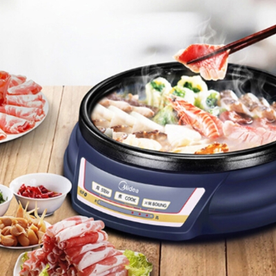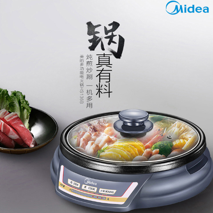 美的(Midea)電火鍋采用大螺旋式金屬發熱盤,受熱均勻。