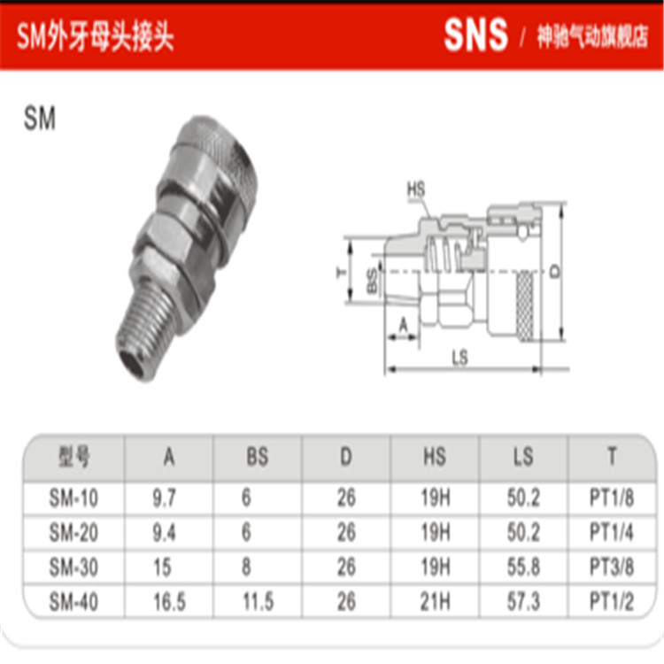 SNS神馳氣動C式自鎖快速接頭SM40快插母頭參數