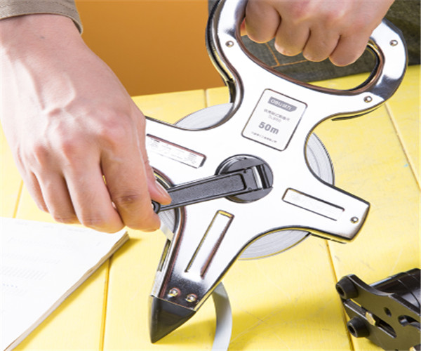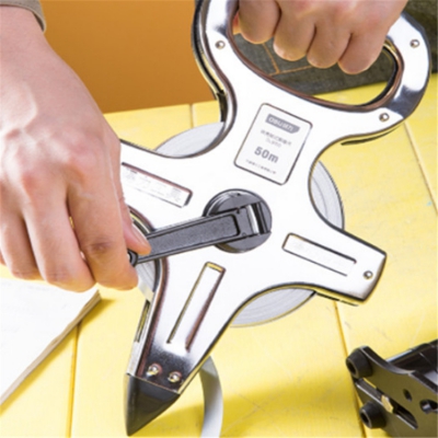 得力50m×12.5mm 鐵殼架式鋼卷尺使用圖