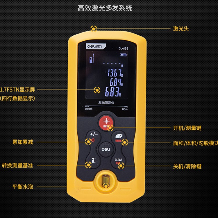 得力激光測距儀手持電子尺量房儀器目標距離測量