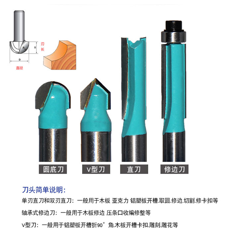 東成木工銑刀直刀V型刀帶軸承修邊刀圓底刀修邊雕刻刀