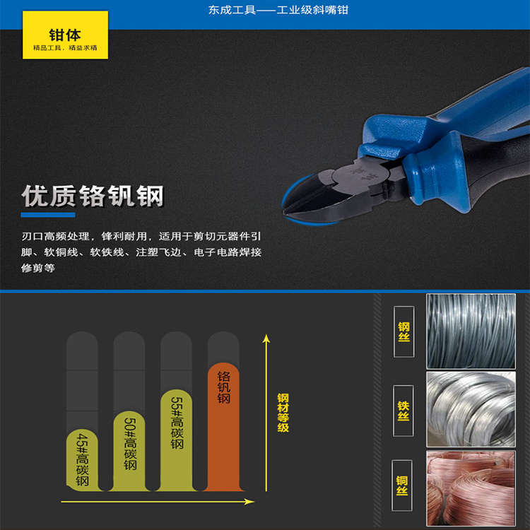 東成斜嘴老虎鋼絲鉗大力卡簧鉗類手動工具,優質鉻釩鋼,