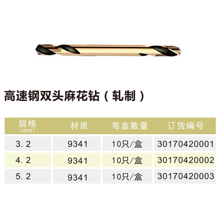 東成高速鋼雙頭麻花鉆,產品參數圖。