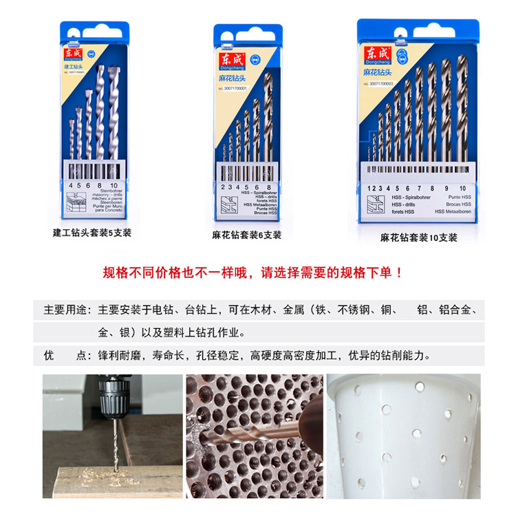 東成高速鋼麻花鉆頭5/6/10件套鉆鐵不銹鋼金屬鉆頭套裝,