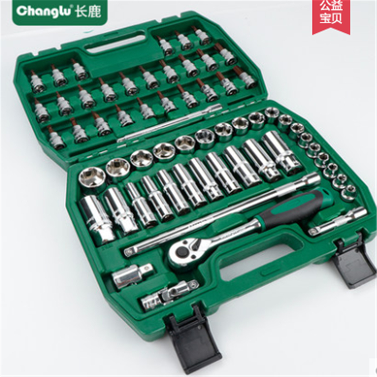 長(zhǎng)鹿套筒扳手套裝121件棘輪板手表面精拋鍍鉻,表面大方防生銹。