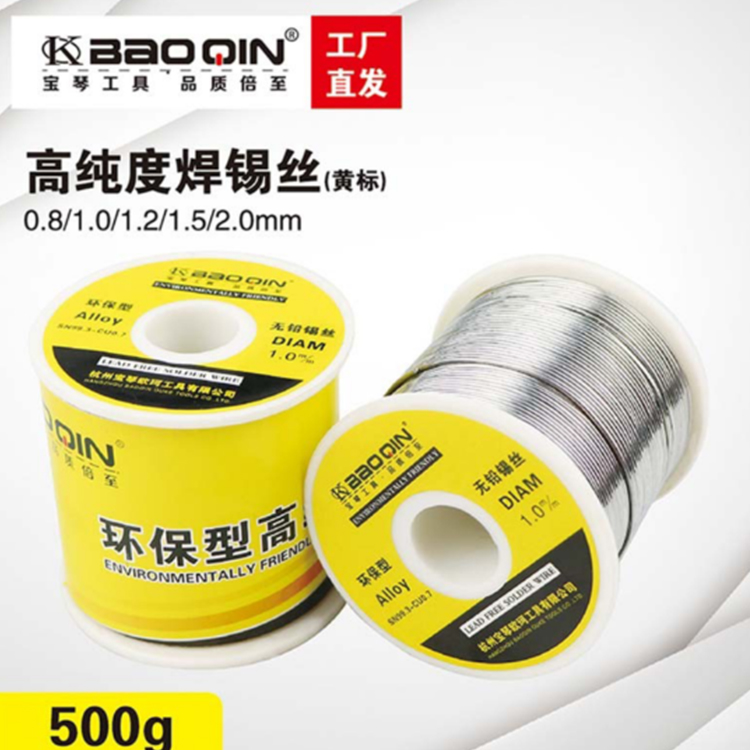 寶琴500g焊錫絲,高效焊接,安全實用,焊點光亮,免清洗,焊后離子污染低。