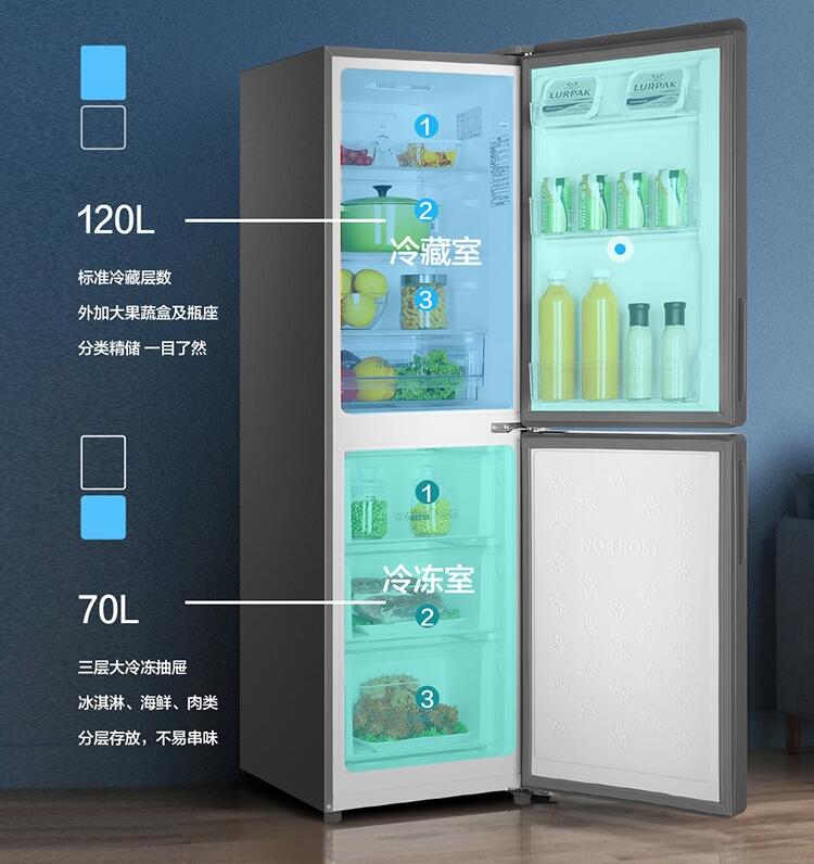 冰箱BCD-190WDCO冰箱雙門190L風冷無霜電子控溫節(jié)能小型兩門