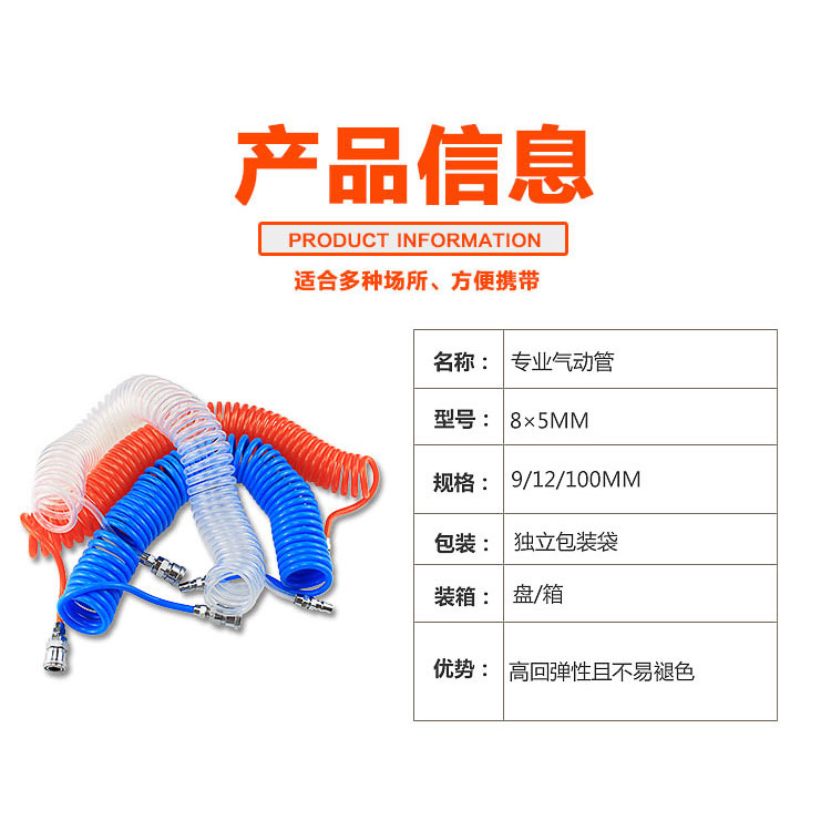 東成PU彈簧管氣動氣泵配件空壓機氣槍螺旋氣管高壓伸縮軟管