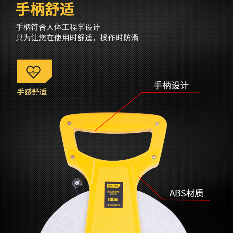 得力架式玻璃纖維長尺長卷尺布尺100米測量工具皮尺手提尺米尺