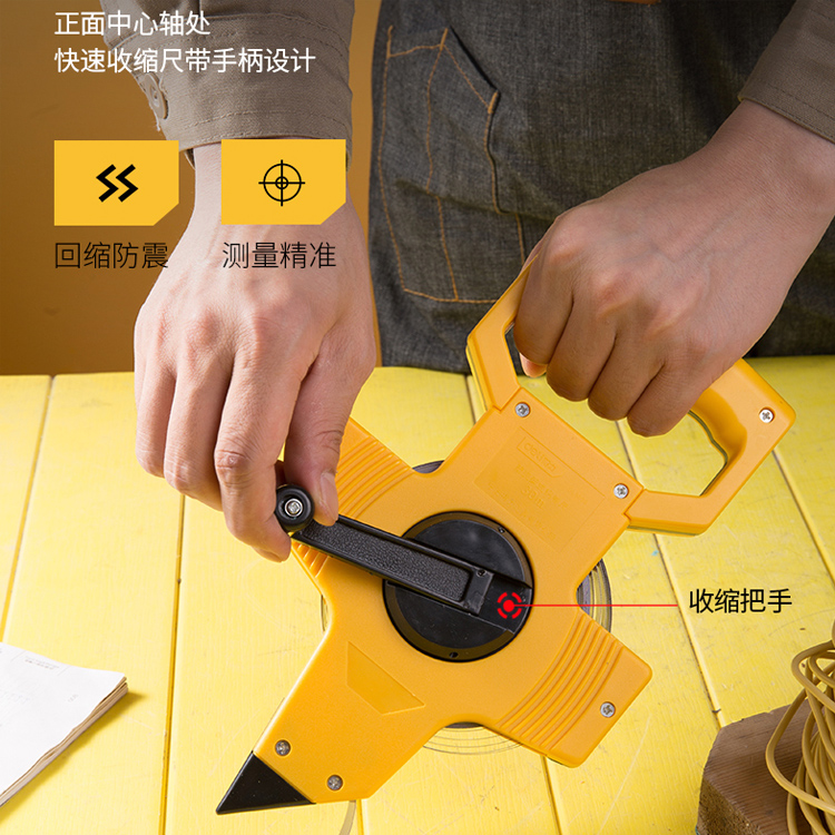 得力高精度鋼架尺架式鋼卷尺長鋼帶尺大卷尺手提尺皮尺50米100米