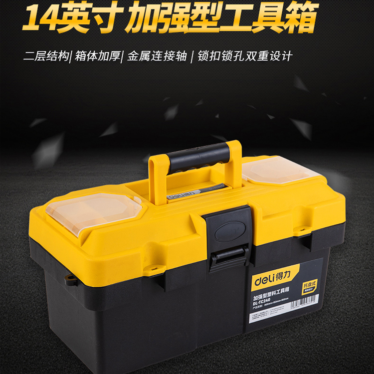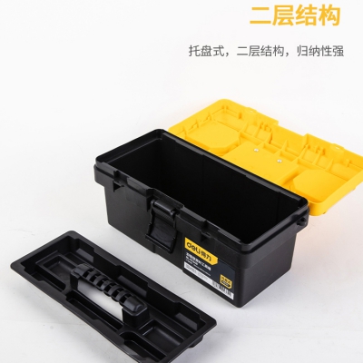得力工具箱加強(qiáng)型多功能手提式塑料大號(hào)家用維修工具盒工具收納箱