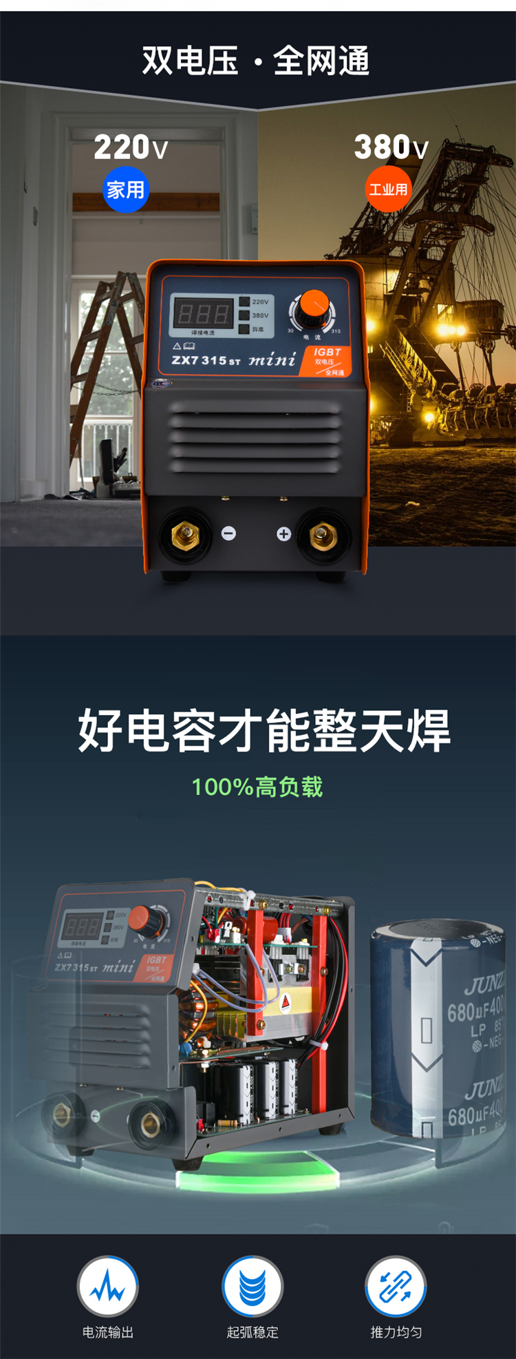 上海東升電焊機家用焊機小型迷你200/250/315電焊全網通,好電容才能整天焊,