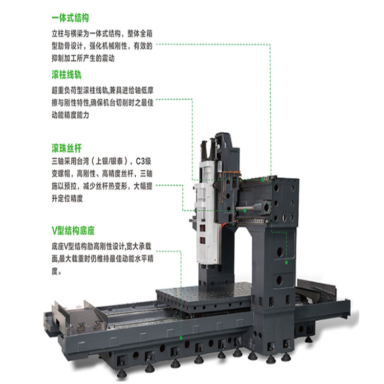 雅力士精機龍門加工中心GMC2518整體全箱型肋骨設計,強化機械剛性