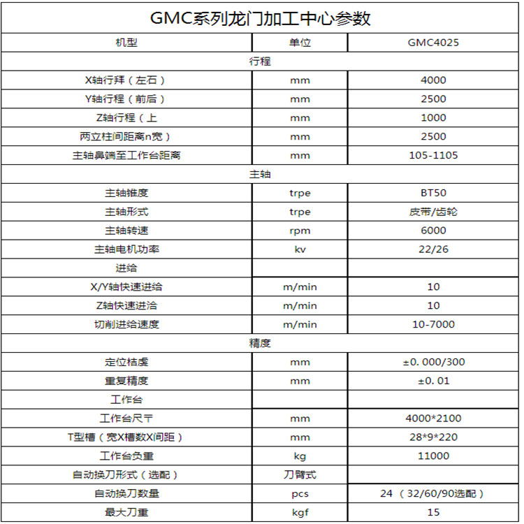 雅力士精機(jī)龍門加工中心GMC4025參數(shù)