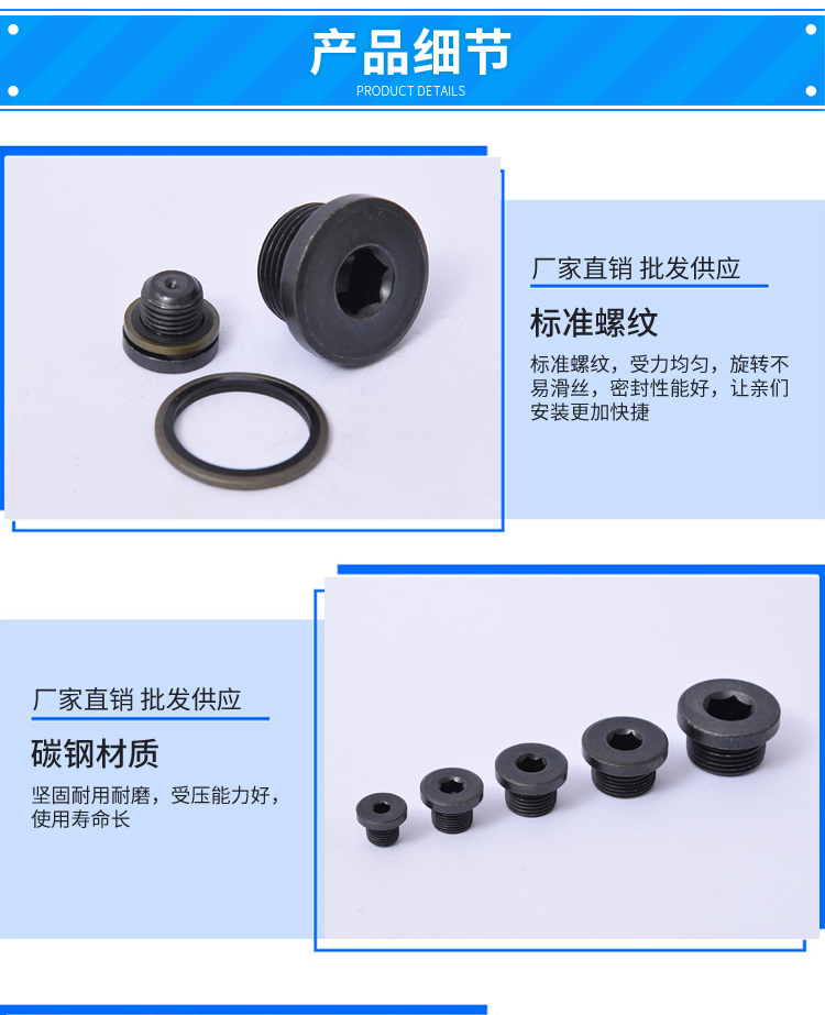 首頁工業五金緊固件堵頭內六角帶邊堵頭碳鋼密封堵頭油塞管堵悶頭經久耐用