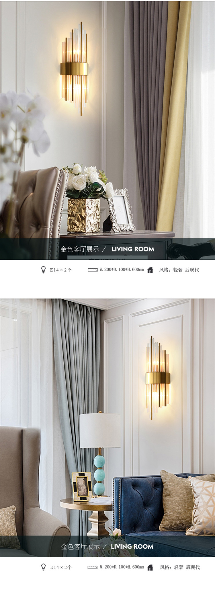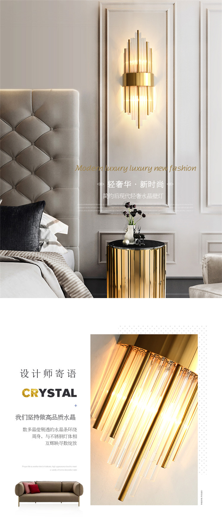 后現代水晶壁燈輕奢客廳背景墻簡約創意個性臥室床頭樓梯過道璧燈