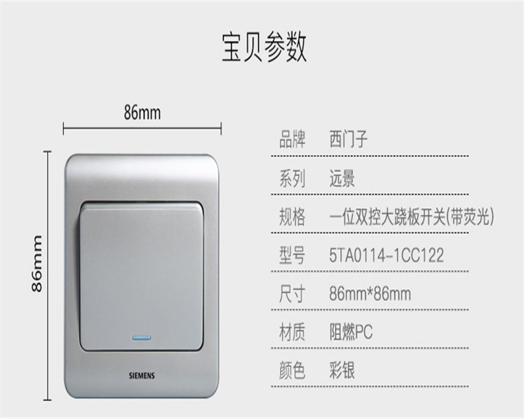 西門子 開關(guān)插座面板 遠(yuǎn)景彩銀墻壁開關(guān)一開雙控帶熒光