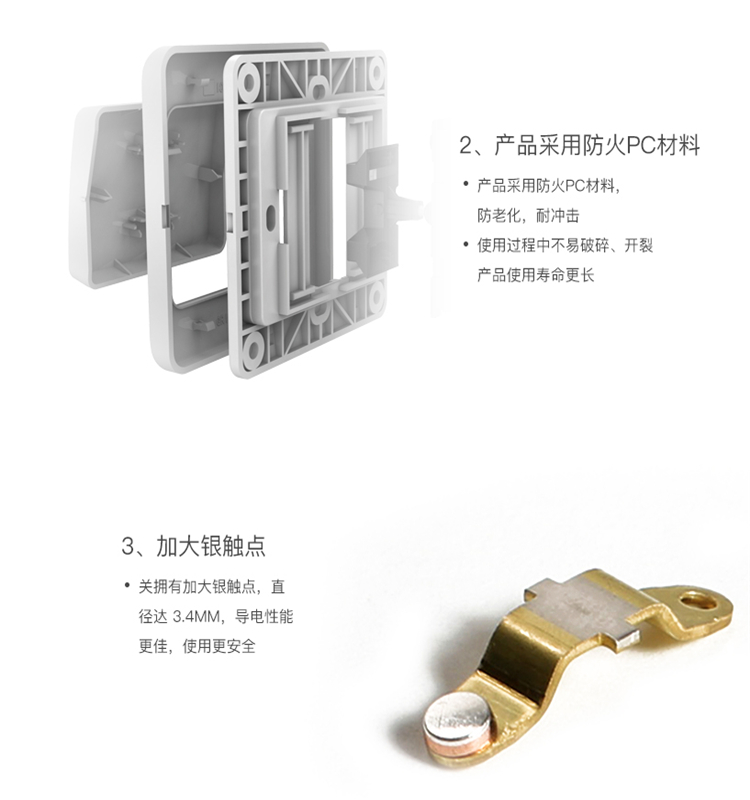 加大銀觸點(diǎn)°關(guān)擁有加大銀觸點(diǎn),直徑達(dá)34MM,導(dǎo)電性能更佳,使用更安全