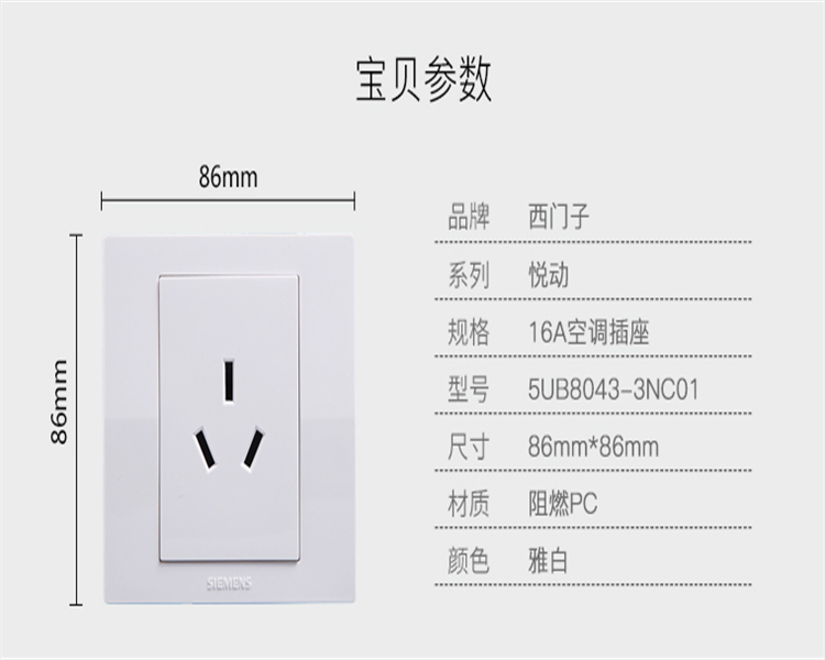 西門子 開關插座面板 悅動白16A三孔空調插座