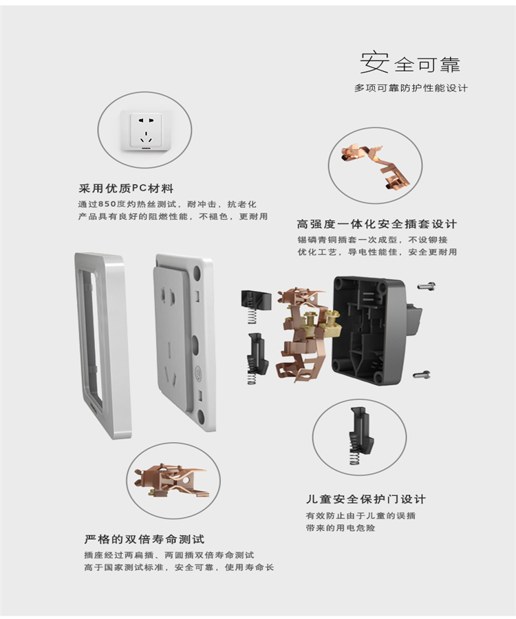 兩圓插雙倍壽命測試高于國家測試標準,安全可靠,使用壽命長