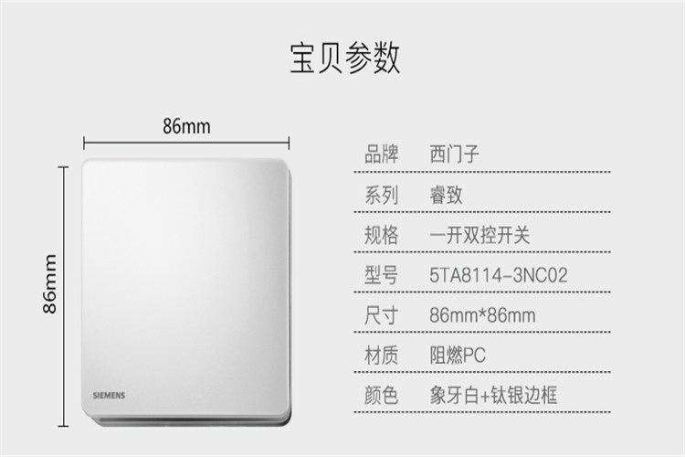 西門子 開關(guān)插座面板 睿致鈦銀系列86型一開雙控開關(guān)