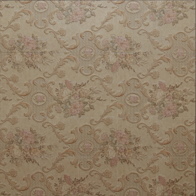 歐式宮廷復(fù)古客餐廳墻磚黃色大花壁紙防潮防霉瓷片