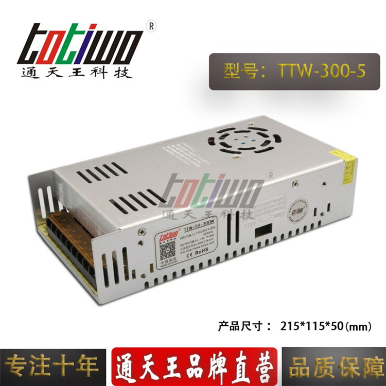 通天王DC5V60A300W高壓轉(zhuǎn)低壓直流開關(guān)電源集中供電變壓器交流輸入轉(zhuǎn)換由開關(guān)選擇,具有過流短路保護(hù)功