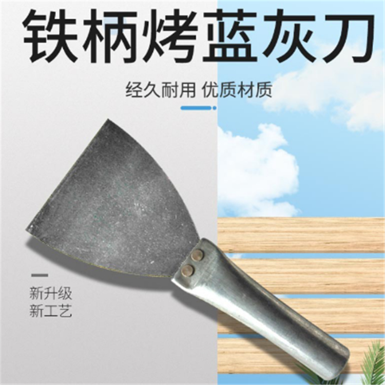 格瓦斯鐵柄烤藍灰刀人體力學設計,手柄采用防滑設計,不傷手,手感舒適。鏡面拋光處理,光滑潔凈不易生