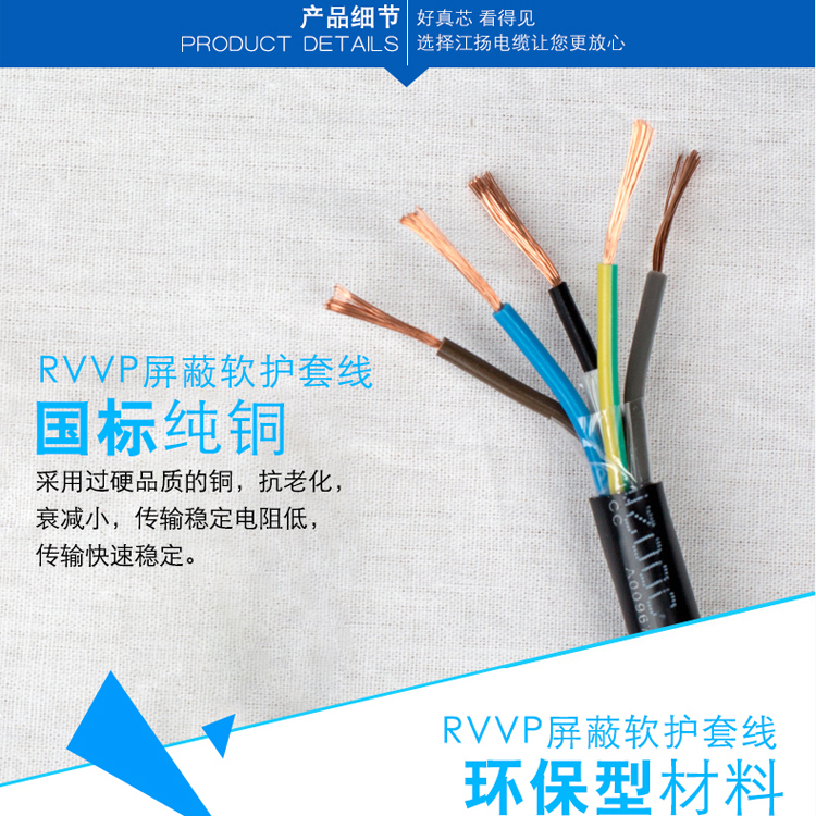 江揚電線電纜國標RVVP 5*0.5屏蔽軟電線音頻線信號傳輸抗干擾屏蔽