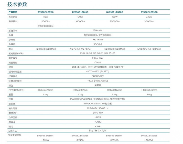 飛利浦高天棚燈 技術(shù)參數(shù)