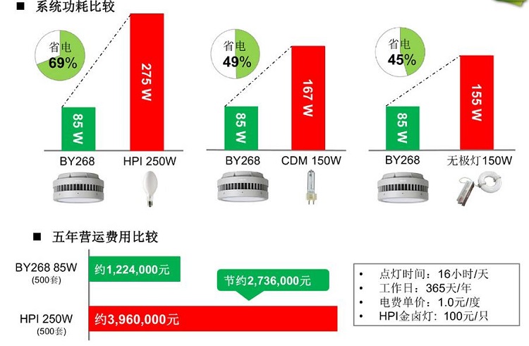 飛利浦低天棚LED工礦燈 LED V.S HID 節能分析