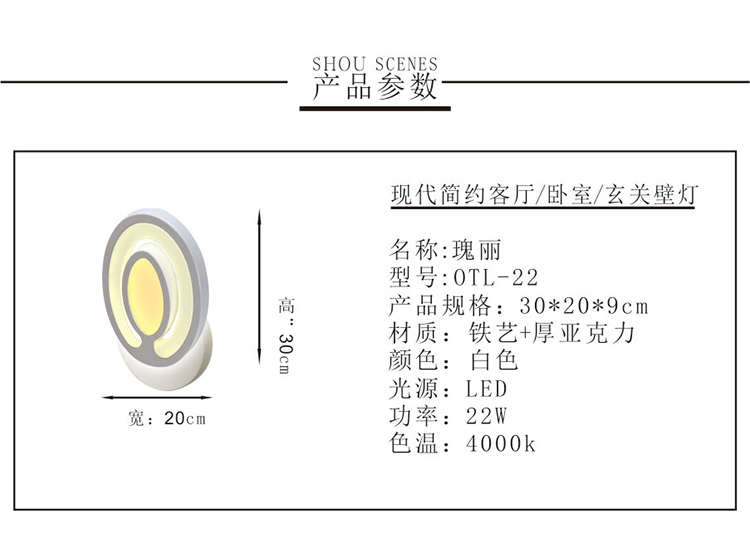 歐特朗OTL-22現(xiàn)代簡約 瑰麗壁燈|LED燈 是鐵藝加厚亞克力為材質(zhì),其他參數(shù)如圖