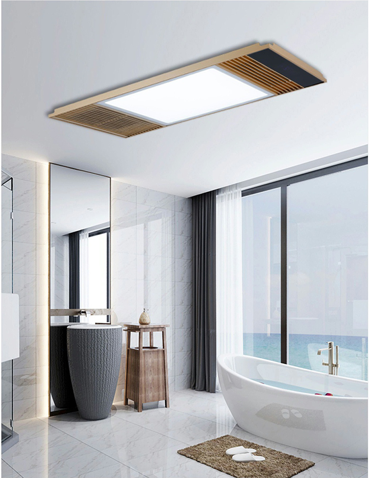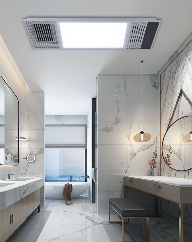 歐特朗OTL-C208宜家超薄四合一系列(雙核)|集成浴霸|風暖安裝在衛生間實拍場景,光線柔和,照明效果好
