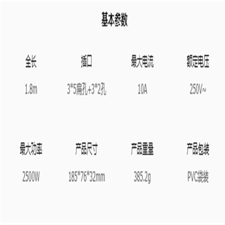 公牛基礎(chǔ)插線板GN-102基本參數(shù)圖