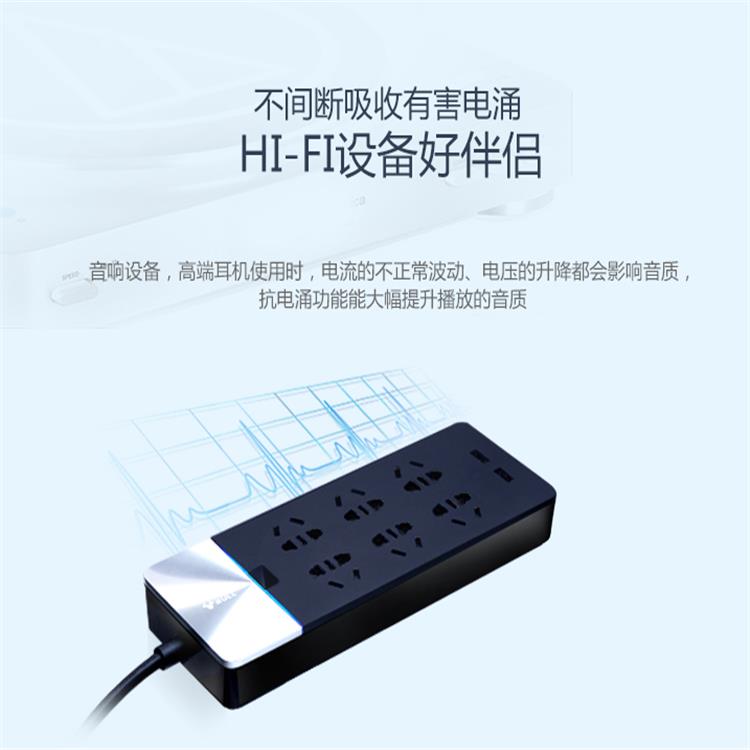 公牛抗電涌防過載USB插線板GN-H406U集成抗電涌電路設計;不間斷吸收尖峰電