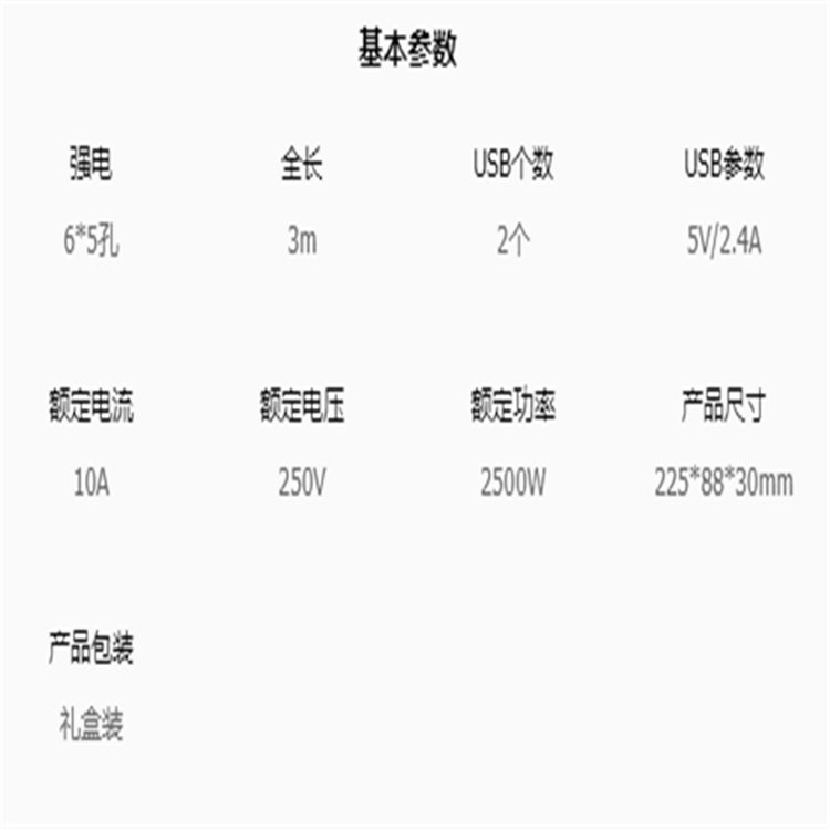 公牛抗電涌防過載USB插線板GN-H406U參數圖