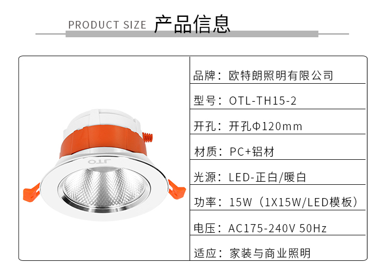 歐特朗OTL-TH152天花射燈|LED嵌入式射燈客廳天花射燈LED射燈具體參數如圖