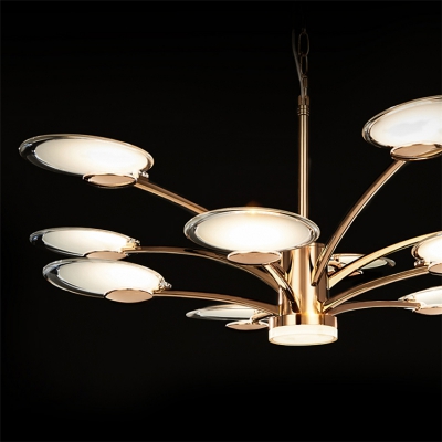 外圈光源隱藏于燈托,朝上部空間發散,經由亞克力透鏡折射+反射,