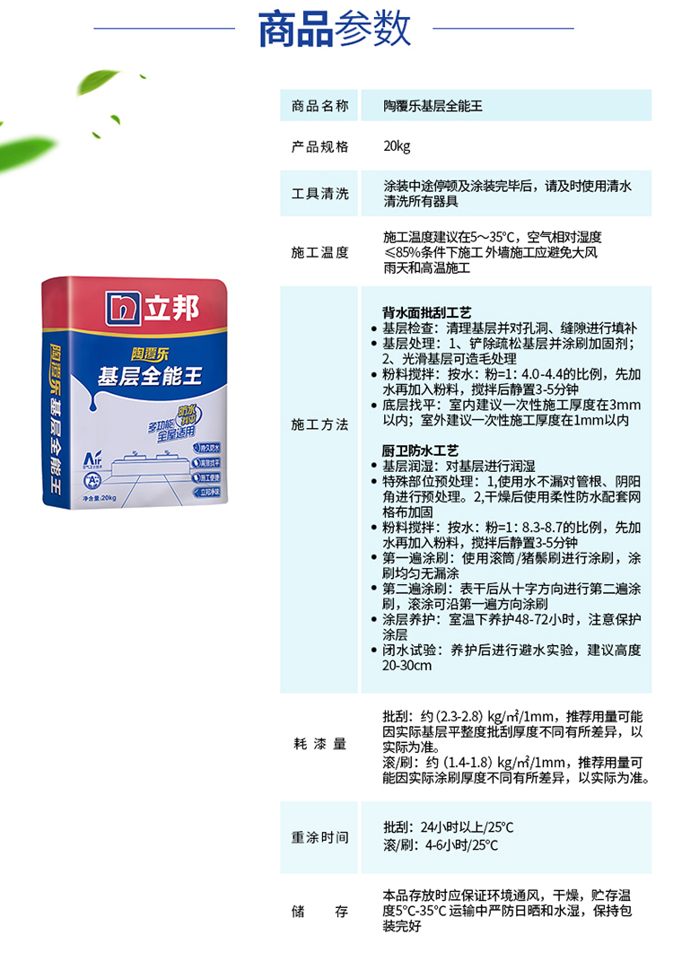立邦 立邦陶覆樂(lè)基層全能王防水找平二合一 參數(shù)展示圖